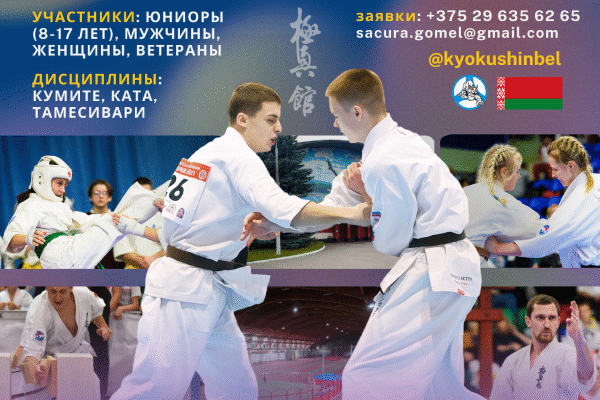 25 октября 2025 года во Дворце Легкой Атлетики, ул. Юбилейная, 52 города Гомеля состоится спортивный праздник для киокушиновцев всех возрастов: Документы на сайте организатора: kyokushinbel.ru